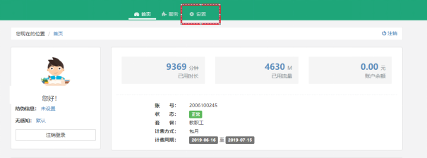 (2)电脑用户登陆自助服务器系统,点击菜单栏的“设置”按钮,如图11所示,进入个人设置页面,在个人设置页面中点击“密码修改”,进行密码修改,如图12所示。