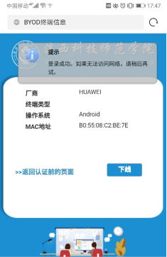 用户需要下线时,只需打开登录页面,在登录页面中直接点击“下线”按钮,如图6所示,便可完成设备的下线操作。