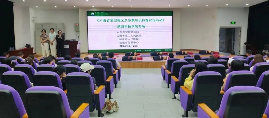 5月25日,校团委邀请临沧市人民医院主任护师杨双英,临沧市120急救中心主任、主治医师耿英,临沧市120急救中心、主任医师周云香到校开展心脏复苏急救知识宣传及急救技能培训活动。校学生会组织230余名学生参加活动。