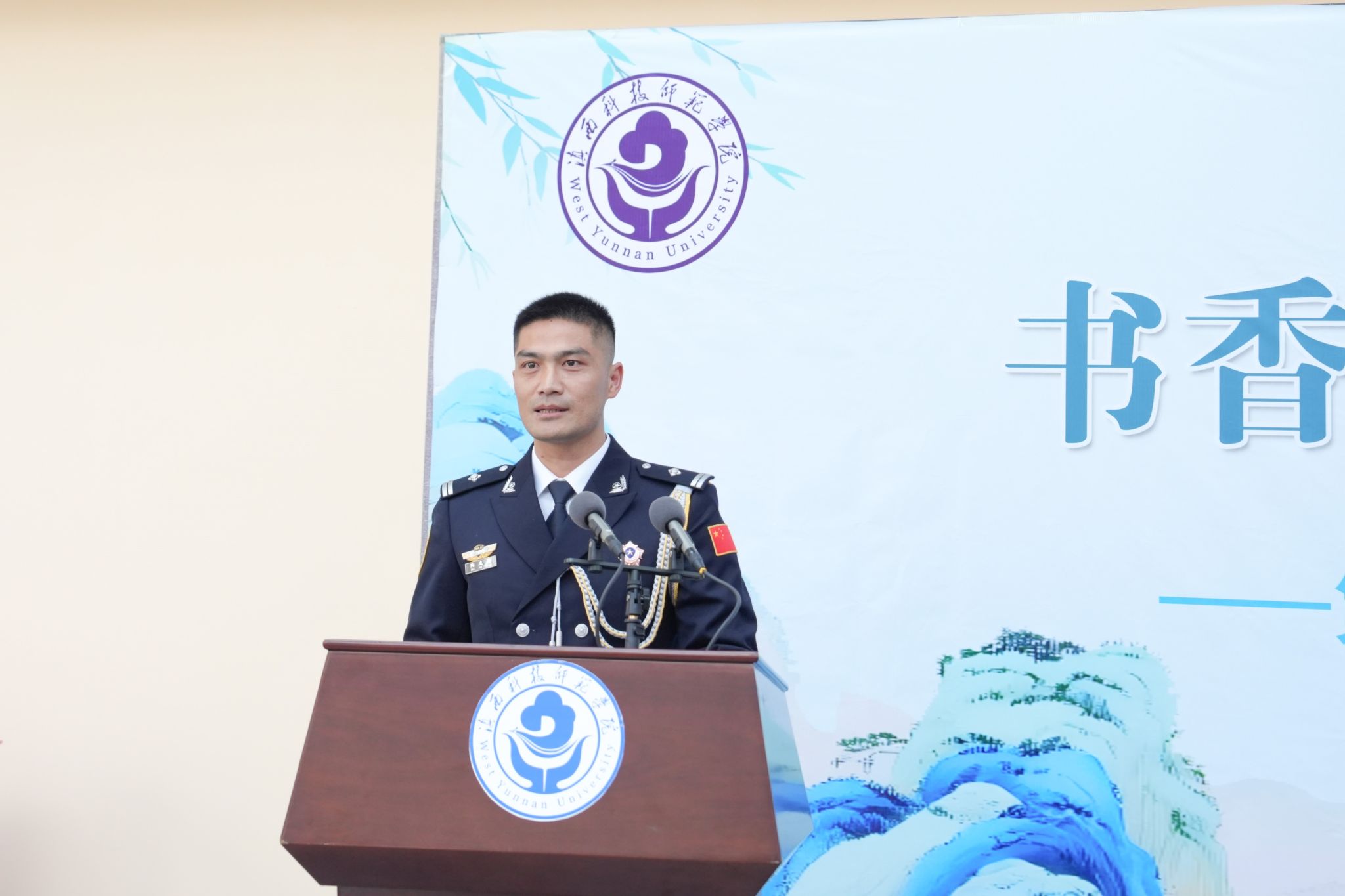 期间,临沧边境管理支队勐捧边境派出所政治教导员陶虎箐分享16年守边岁月里的阅读经历与感受——他从泛黄文史资料中追溯中国远征军浴血怒江的历史,在烈士墓前读懂担当,在记录战友故事中感悟文字力量。他用行动诠释“阅读是精神的边防”,将边境管理、疫情防控中汲取的勇气信念化作守护国门的硬核力量,并寄语滇院学子在阅读中明确人生方向,于实践中绽放青春梦想。