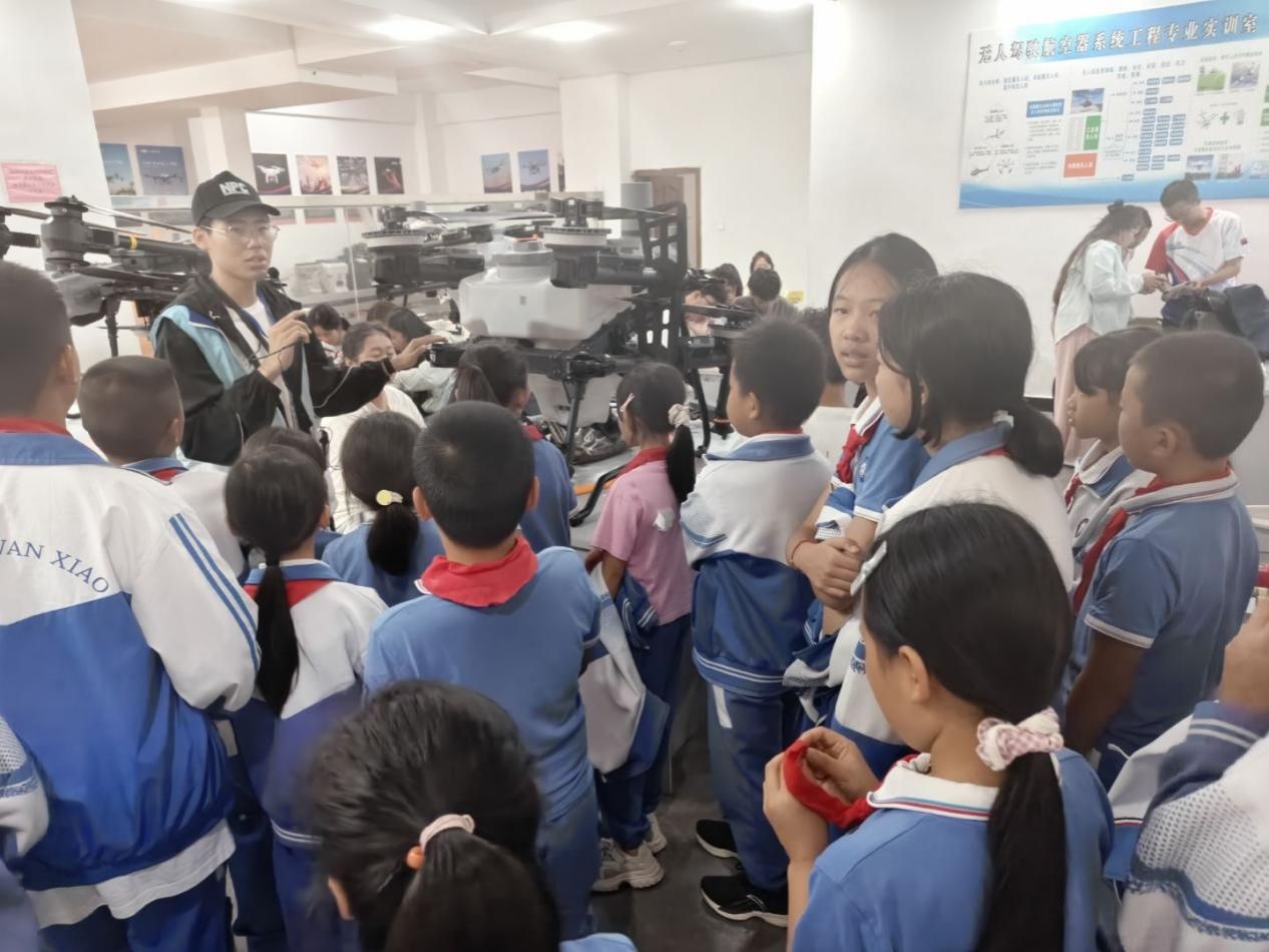 活动中,学校安排专业教师与大学生志愿者担任讲解员,带领同学们有序参观工业机器人实验室、无人机智能控制与仿真实验室、轨道交通信号与控制实验室、无人驾驶航空器系统工程实训中心等实验室。在工业机器人实验室,机械臂精准完成抓取、组装动作,引来同学们阵阵惊叹;无人机智能控制与仿真实验室里,志愿者结合模拟飞行演示,用通俗易懂的语言解析飞行控制原理,同学们踊跃举手提问,近距离触摸科技的脉动;轨道交通信号与控制实验区的模拟设备,让同学们直观了解交通信号运作机制,并种下探索交通科技的种子。