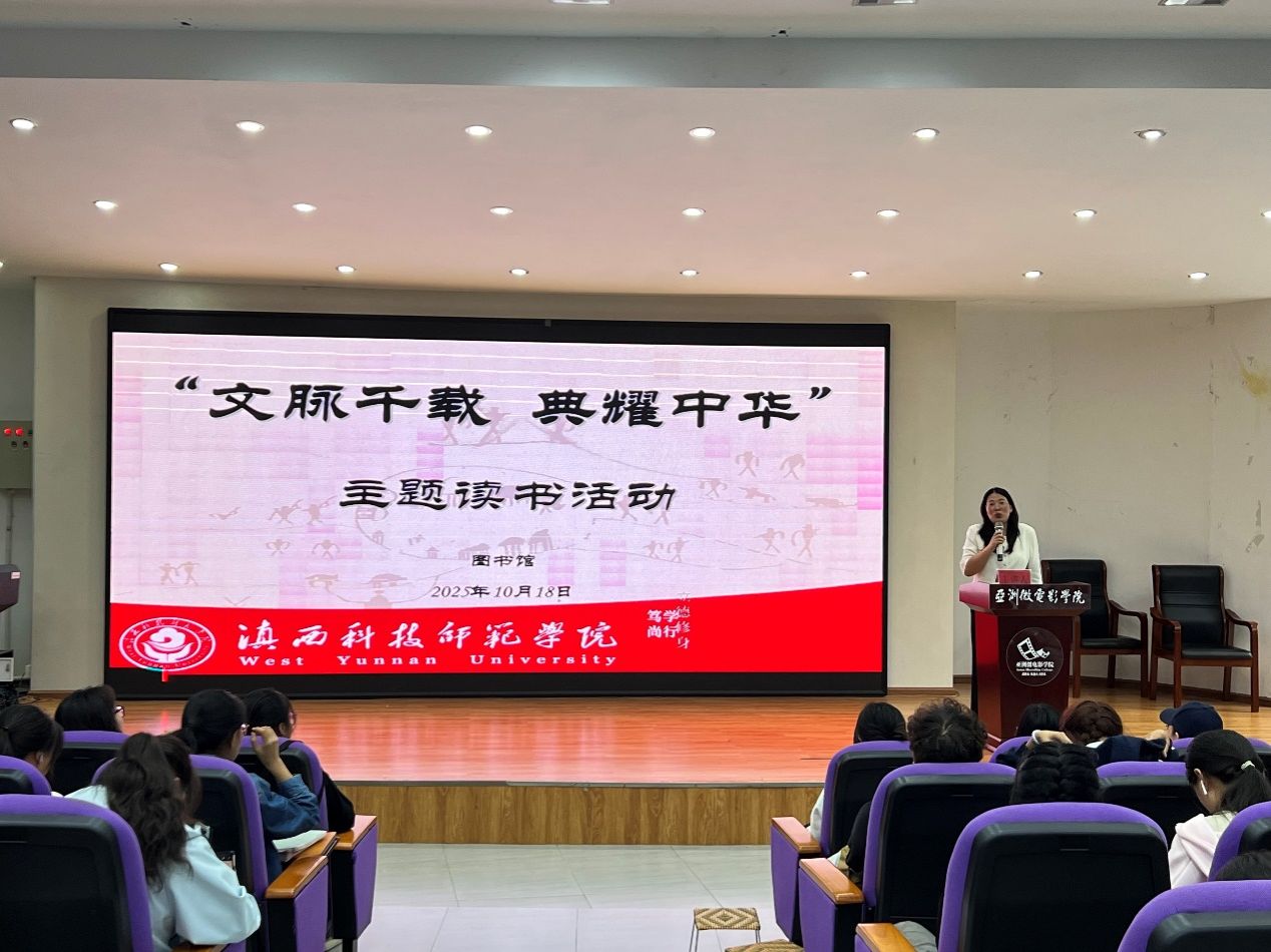 10月18日,图书馆开展“文脉千载 典耀中华”主题读书活动,并邀请人文学院吴康副教授与孔镭副教授担任分享嘉宾,进一步推进我校“书香滇院”建设工作,激发广大师生的阅读热情,营造爱读书、读好书、善读书的校园书香氛围。