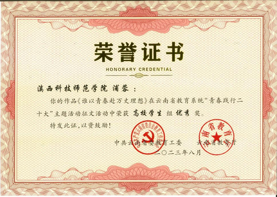 其中,教师教育学院浦蓉同学的作品《谁以青春赴万丈理想》荣获省级高校学生组优秀奖。